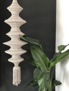 Dit Bohemian Fishnet is gehaakt met de Epic van Yarn and Colors. Met maar liefst 8 metalen ringen en een hoogte van 1.50 meter is dit een echte eyecatcher in je woonkamer. In de zomer staat deze hanger ook erg mooi onder een overkapping met verlichting erin. De Epic haak je op haaknaald 4/4.5. De breedste ring is 40 cm. Dit Fishnet is te maken in de kleur die jullie zelf willen. Na inschrijving krijgen jullie een kleurenkaart om te kiezen. Kosten voor deze workshop bedragen; Euro 50,00